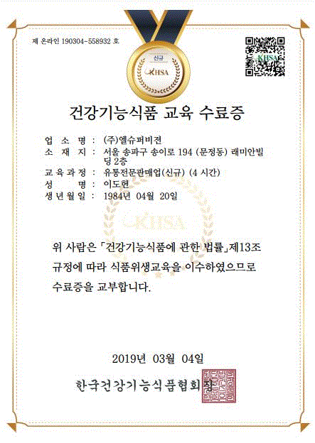 °Ç°±â´É½Äǰ ±³À°¼ö·áÁõ