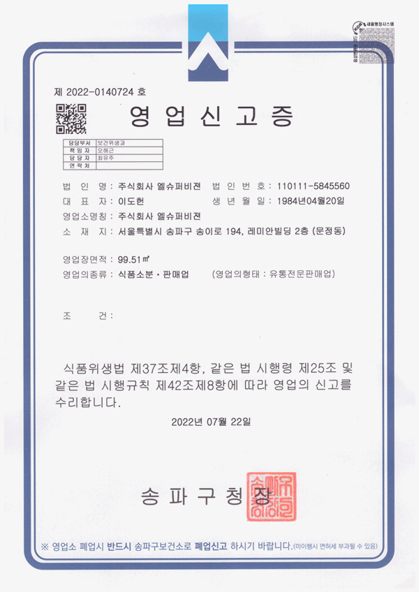 ½ÄǰÀ¯ÅëÀü¹®ÆÇ¸Å¾÷ µî·ÏÇÊÁõ